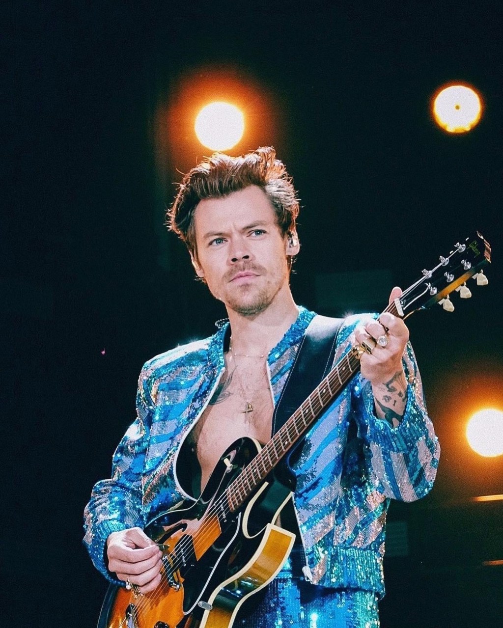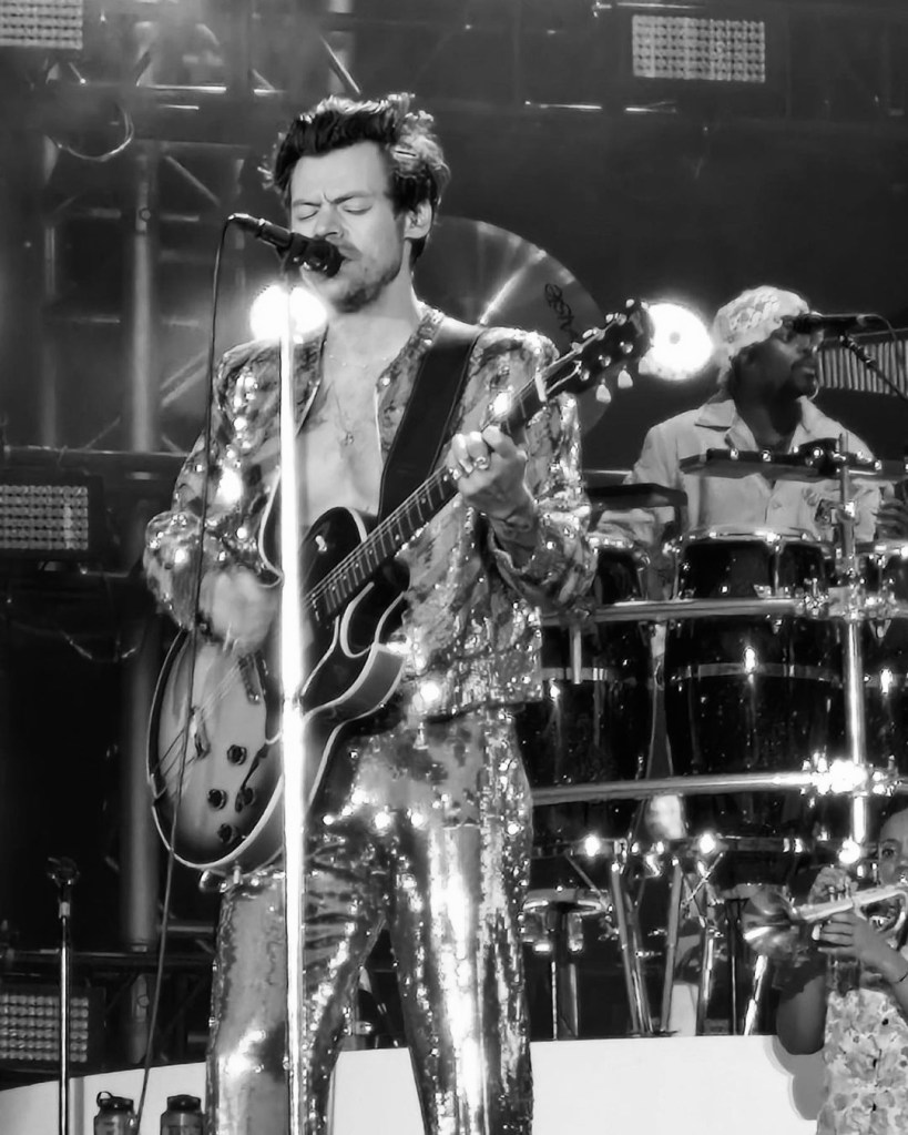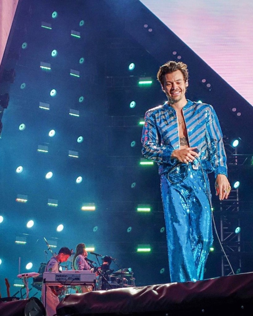 when suddenly Mister Styles jumped out running between the members of the LoveBand, wearing what is one of the best, if not THE BEST, outfits of this whole tour. Exactly how we had manifested it.